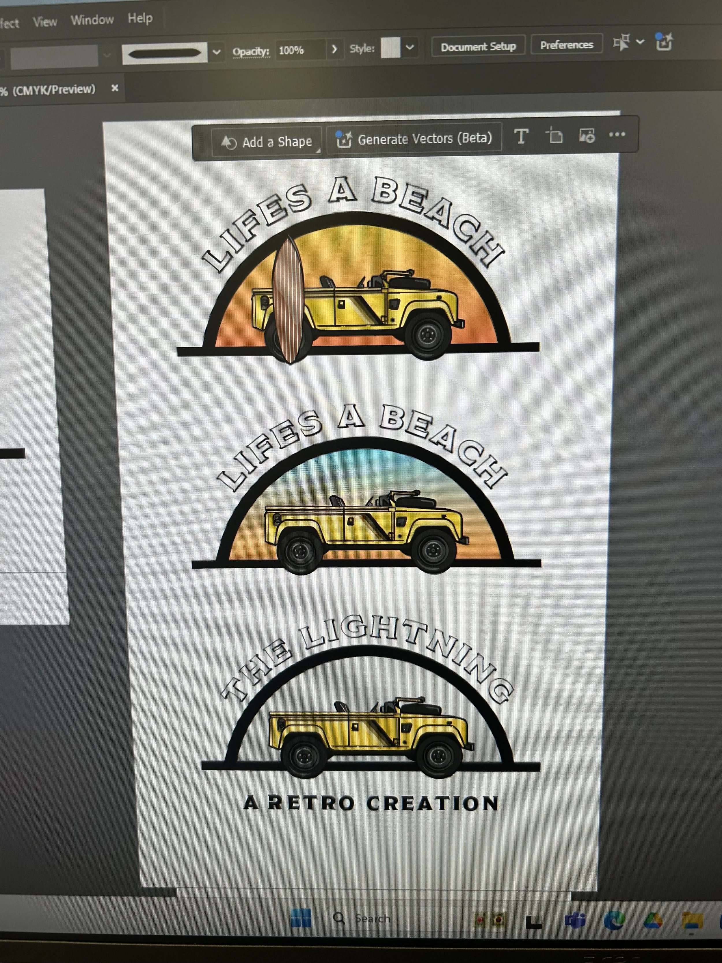 Going down a completely different direction, I experimented with a new car illustration, bold colours and bold typography. I loved this ‘quirky’ style and the detail that contrasted the simple sketchy vibe of the other designs.